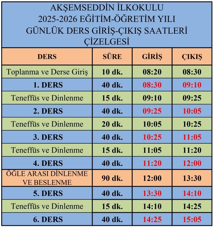 GÜNLÜK ZAMAN ÇİZELGEMİZ